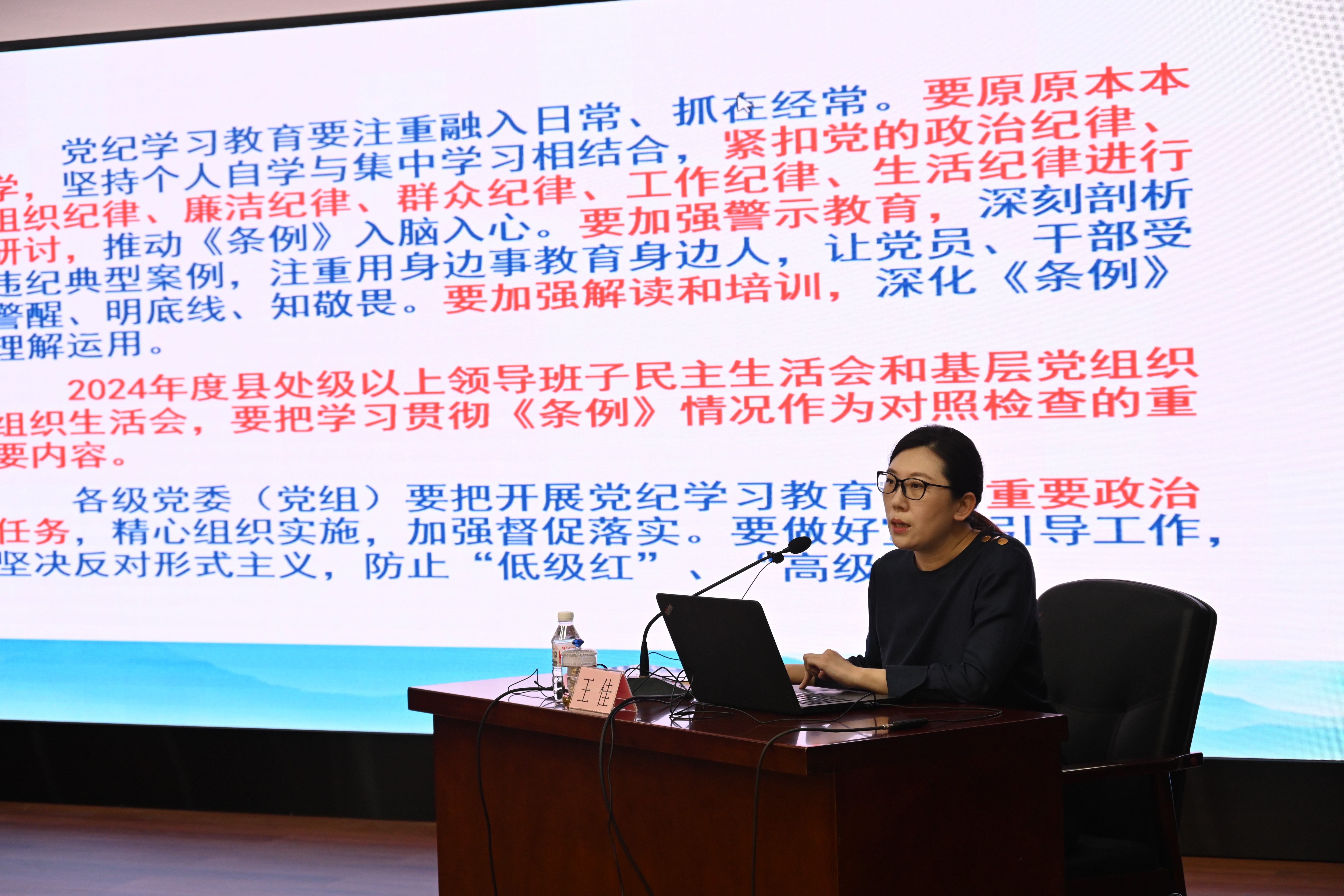 王佳教授從中央部署、修訂概況、條文解讀等方面對《條例》作了深入解讀,結合具體條款、基本內涵、適用范圍和案例剖析,對違反政治紀律、組織紀律、廉潔紀律、群眾紀律、工作紀律、生活紀律的行為及處分作了系統講解,讓全體黨員干部對《條例》理解得更深入、更透徹。