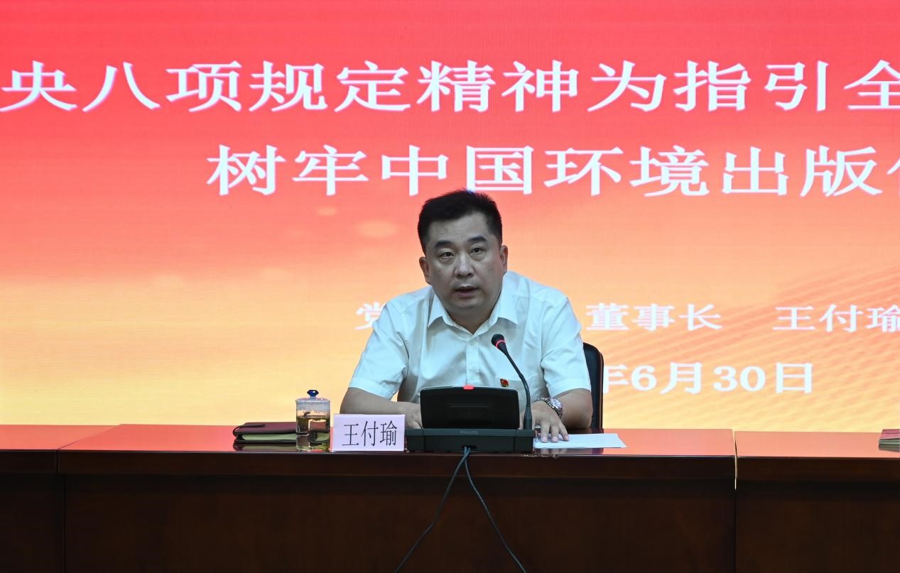 王付瑜同志結(jié)合深入貫徹中央八項規(guī)定精神學習教育要求,以《以中央八項規(guī)定精神為指引全面加強作風建設(shè) 樹牢中國環(huán)境出版價值觀》為題為全體黨員、干部講黨課。