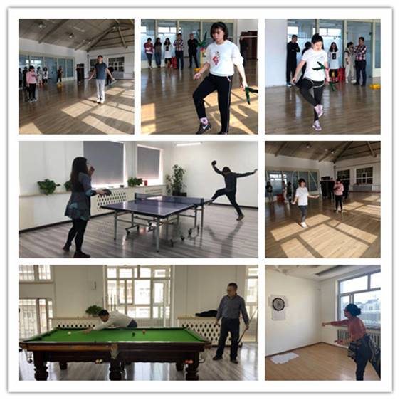 經過緊張激烈的角逐,周健、梁輝、王子龍、黃興和馬麗穎分別榮獲了臺球、乒乓球、定點飛鏢、跳繩和踢毽子五個項目的一等獎。
