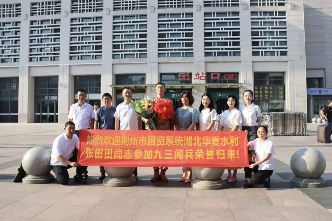 9月4日下午,張?zhí)锾锿据d譽歸來。荊州市退役軍人事務(wù)局副局長李荊鳳,荊州市政府國資委黨委委員、副主任童克忠、黨委委員、副主任嚴珩,湖北華夏水利黨委書記、董事長張澤武一行來到荊州火車站熱情迎接。